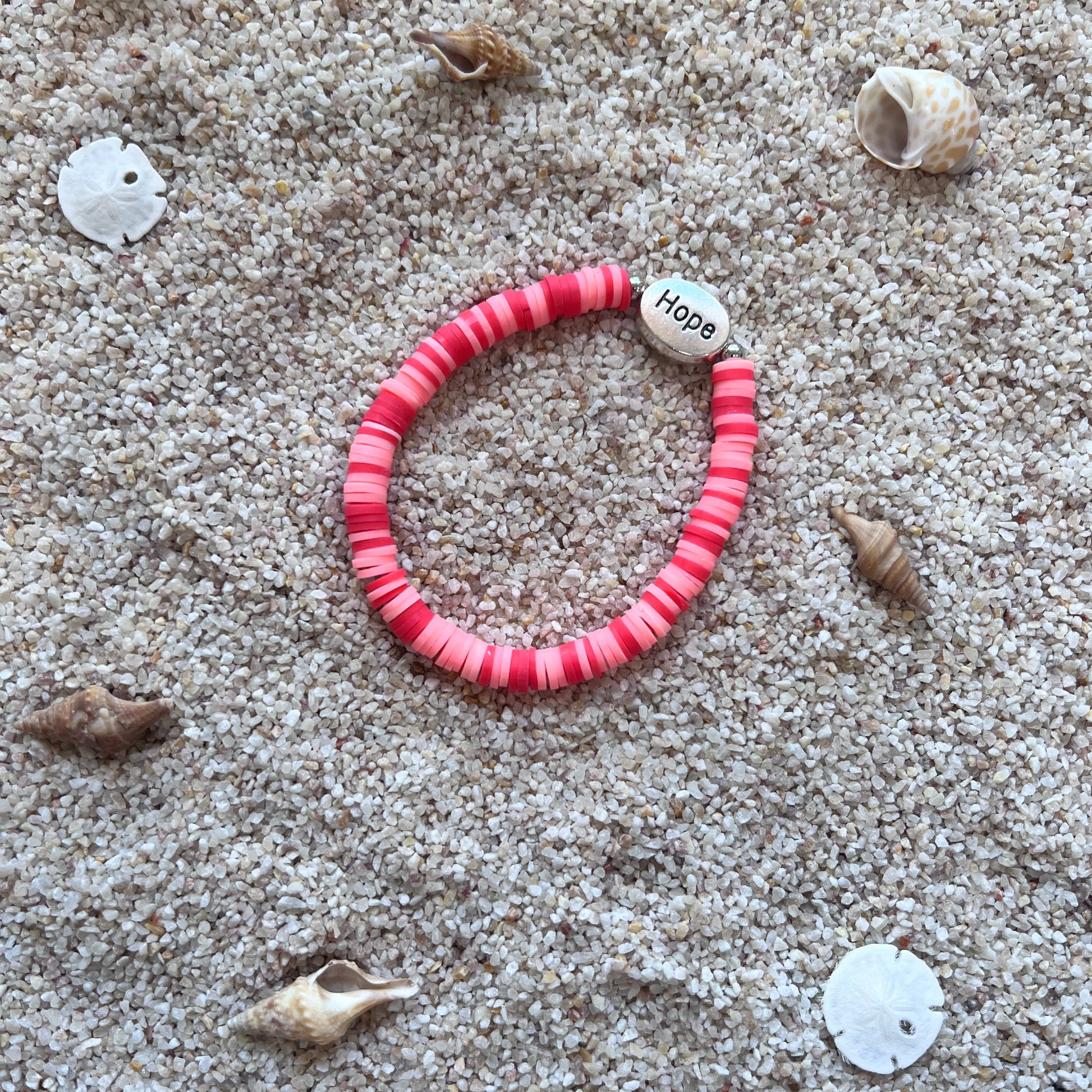 Inspiring Pink Hope Charm Beach Beaded Bracelet